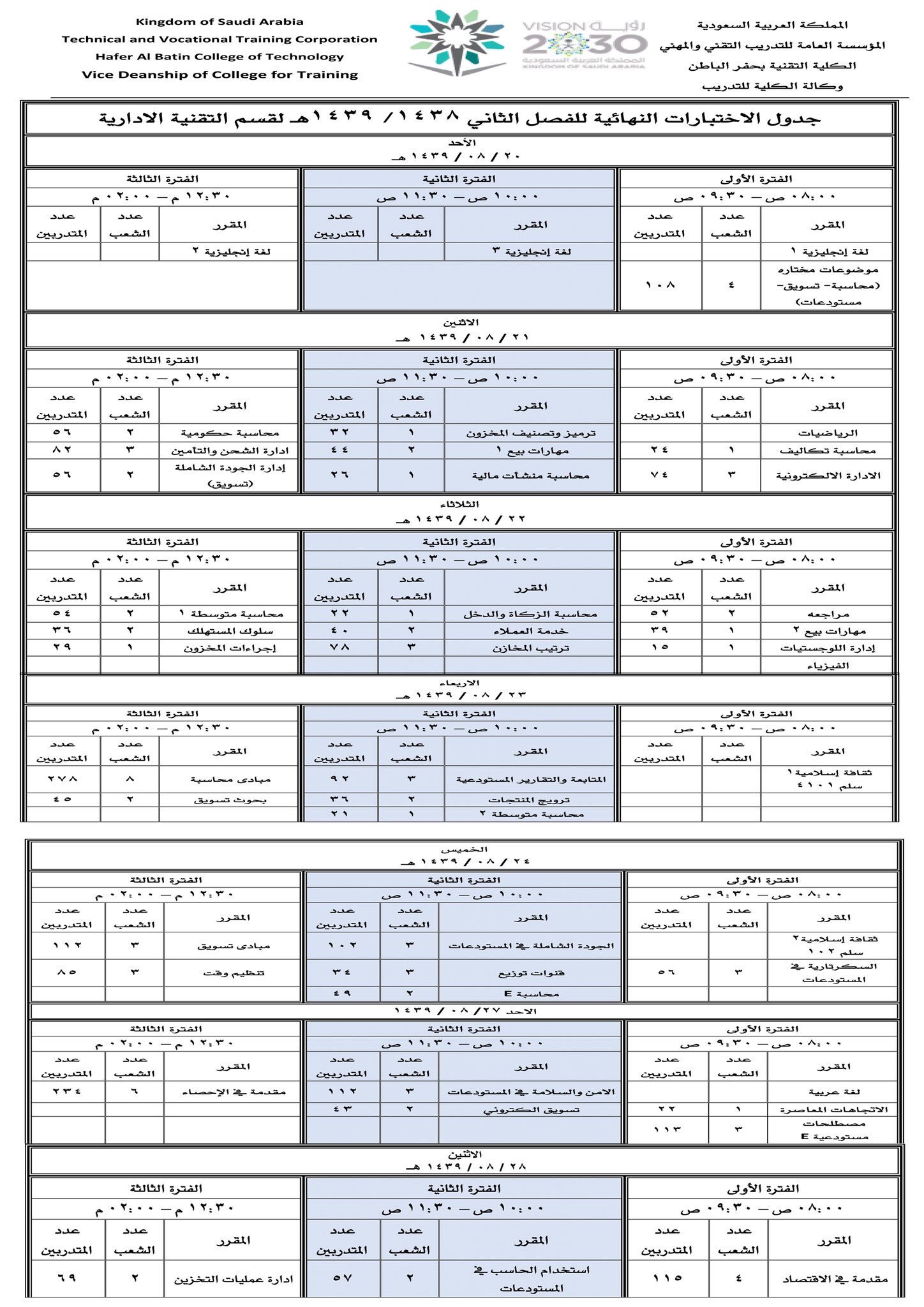 عاصمة الربيع على تويتر جدول الاختبارات بكلية تقنية حفرالباطن في قسم التقنية الادارية التقنية الإلكترونية التقنية الميكانيكية تقنية الحاسب الآلي للعام التدريبي الثاني 1438 1439هـ Https T Co 5fmpgkwruw