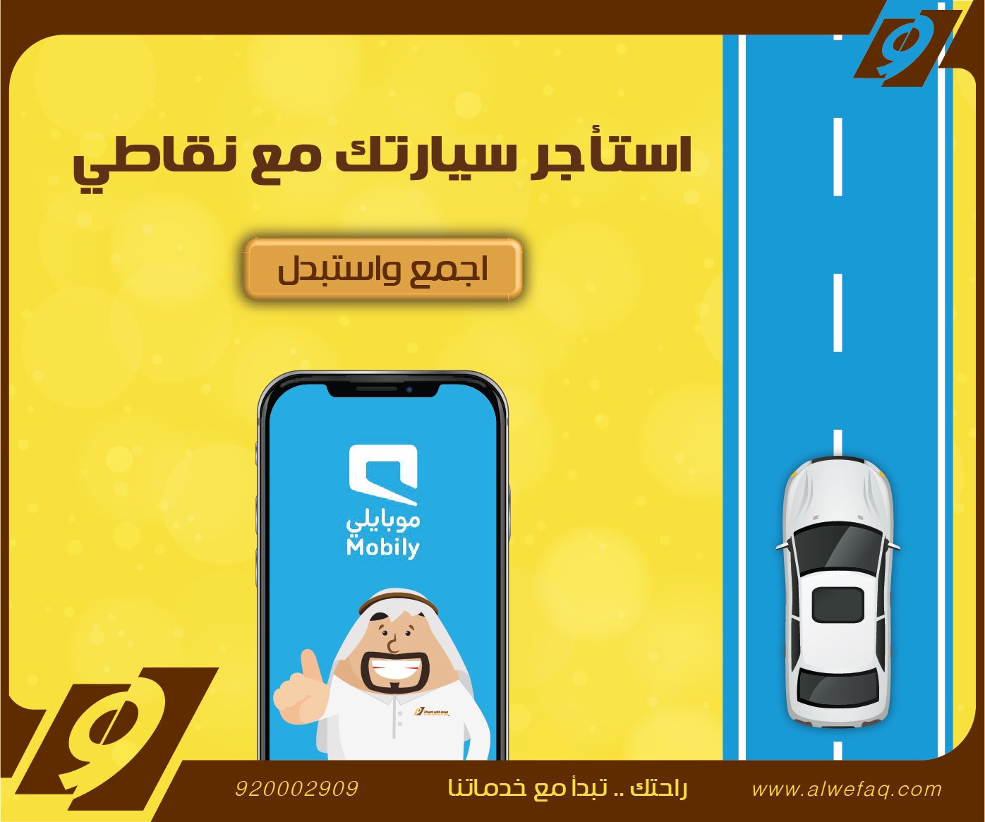 O Xrhsths الوفاق لتأجير السيارات Al Wefaq Rent A Car Sto Twitter الان تقدر تستأجر سيارتك من نقاطك مع نقاطي في Mobily اكسب نقاط واستبدالها في جميع فروع الوفاق اجمع