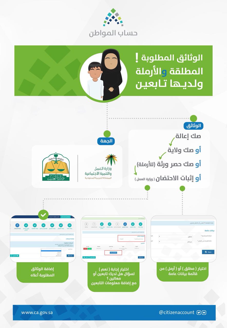 حساب المواطن On Twitter يمكن للمرأة التسجيل في حساب المواطن كـ ربة أسرة وإضافة التابعين لها إذا كانت مطلقة أو أرملة
